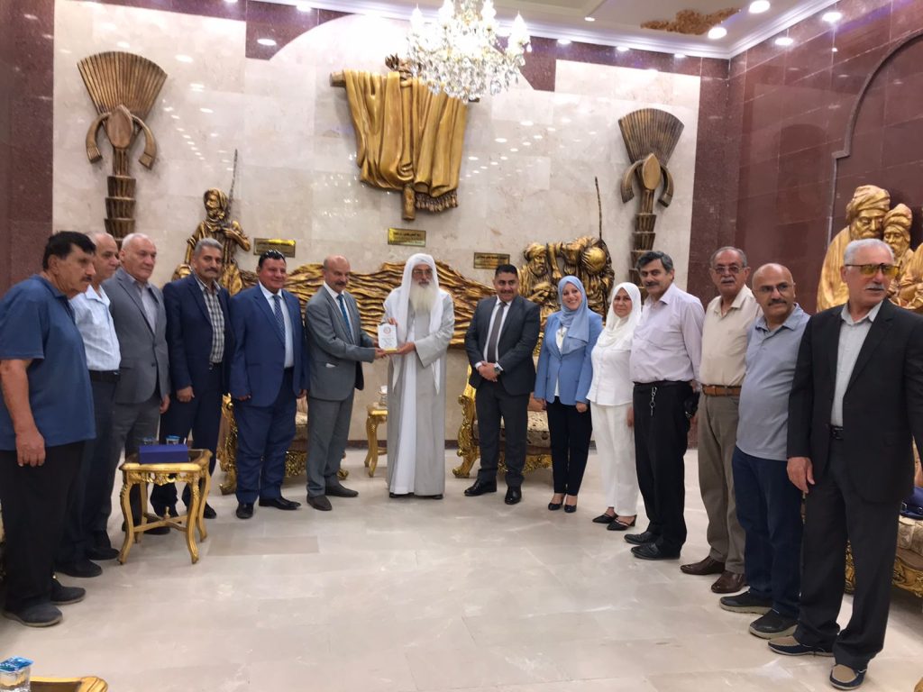 من اجل المحبة والسلام وحب الوطن بين الاديان السماوية في العراق والعالم كرم رئيس الاتحاد العربي للاعلام الالكتروني د. صالح المياح والوفد المرافق له ( درع الشكر والتقدير) الى رئيس الطائفية الصابئة في العراق والعالم الشيخ ستار جبار الحلو والمستشار لمكتب رئيس الوزراء لشؤون الطائفة الصابئة الاستاذ بشار فيصل